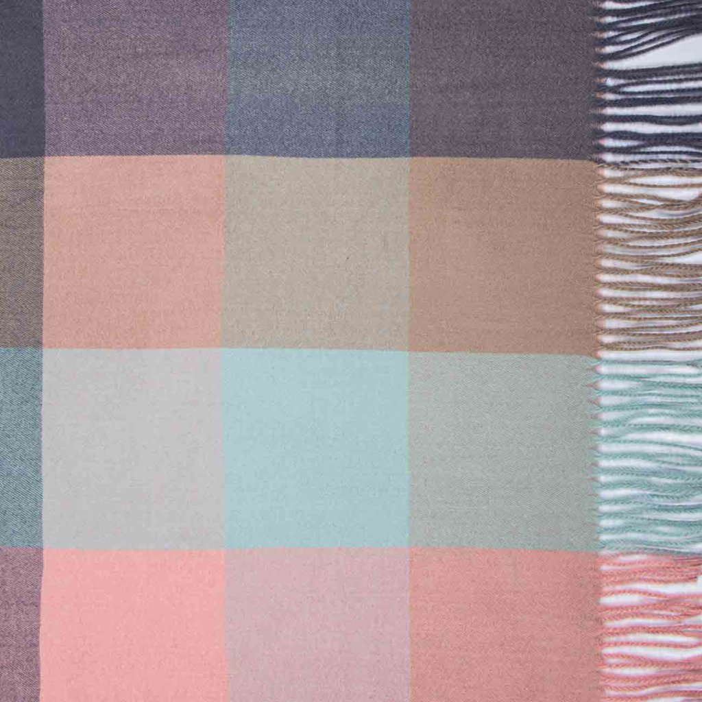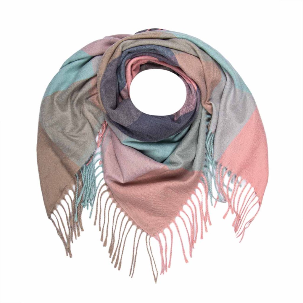 O eșarfă elegantă pentru femei, în nuanțe pastelate de albastru, roz și bej. Combinația de culori delicate creează un aspect elegant și proaspăt. Datorită materialului plăcut și călduros, este ideală pentru zilele mai reci, dar și ca un accesoriu stilat pentru palton sau pulover.