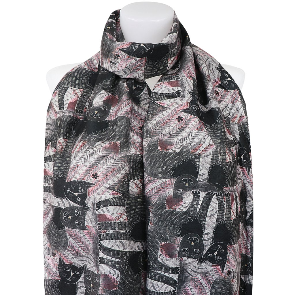 Esarfa dreptunghiulara calda de dama 3013-7 cu imprimeu pisici, negru 7200669-4