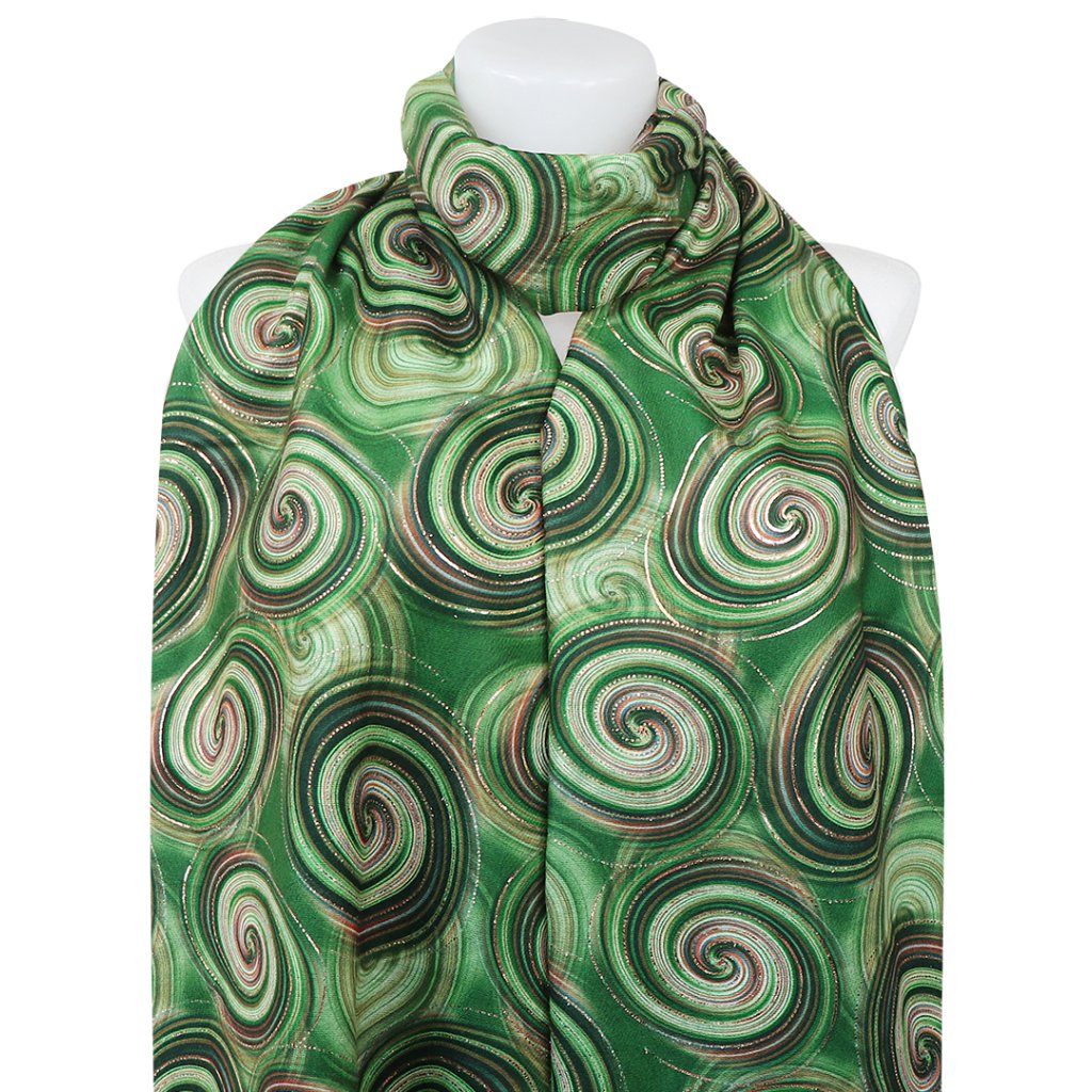 Esarfa dreptunghiulara calda de dama 3015-29 cercuri abstracte cu fir auriu, culoare verde 7200686-4
