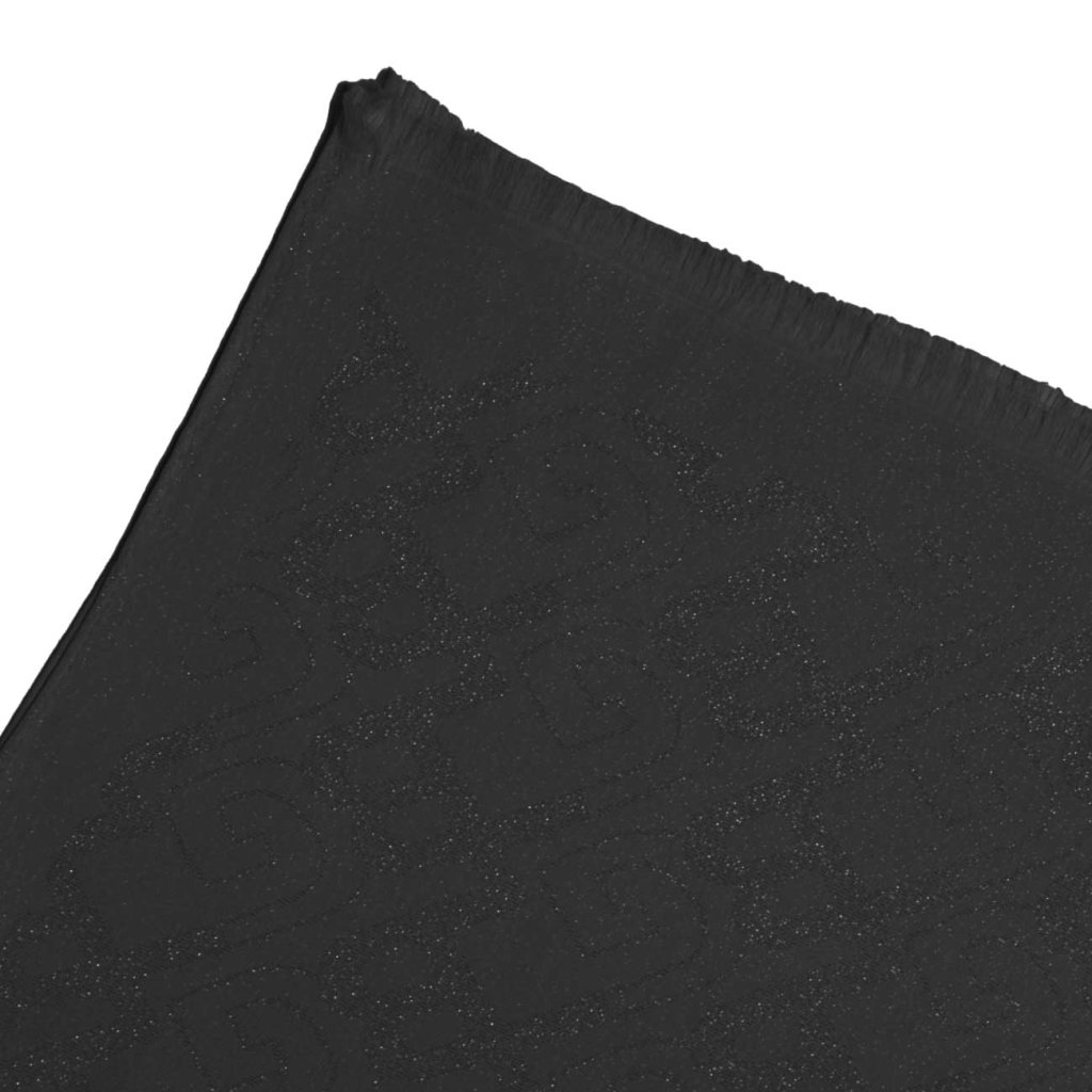 Vă prezentăm o eșarfă ușoară pentru femei din mătase neagră cu literele BG, decorată cu fir argintiu strălucitor - accesoriul perfect pentru fiecare doamnă care dorește să impresioneze. Șalul dispune de franjuri decorative la capete. Eșarfa este confecționată dintr-o țesătură subțire și aerisită. Este o piesă foarte practică și elegantă. Modelul său superb, cu fir strălucitor, va atrage cu siguranță privirile, indiferent de ținuta pe care o purtați! Piesa ideală din primăvară până iarna, perfectă pentru a fi legată în jurul gâtului în orice mod doriți.