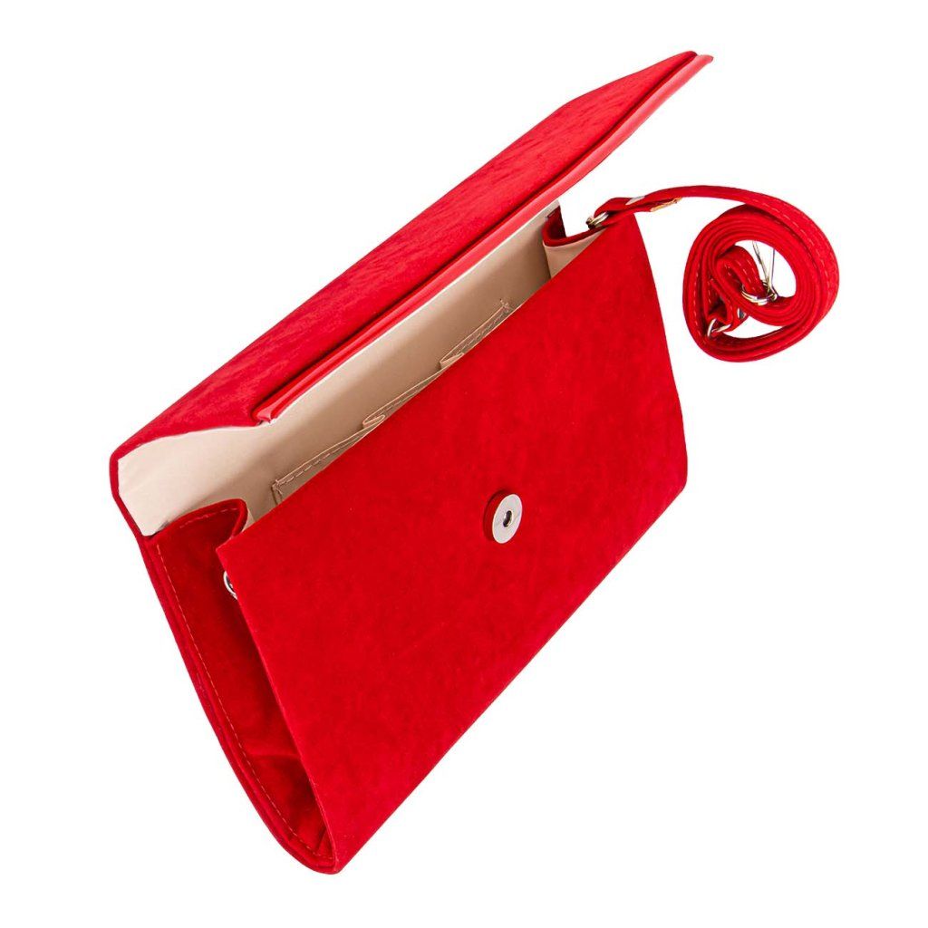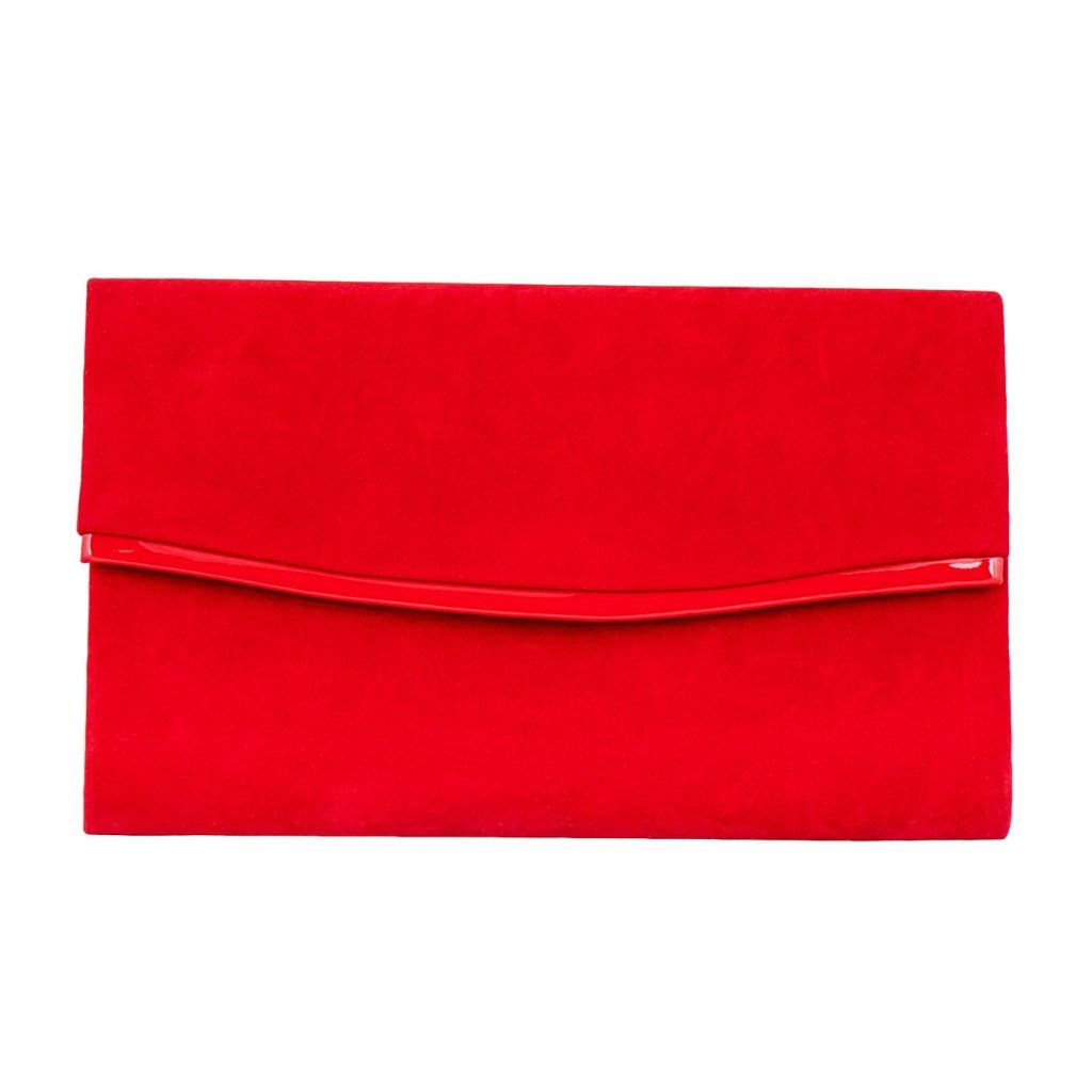 Geantă de damă tip plic din piele întoarsă roșie 7300656-39
