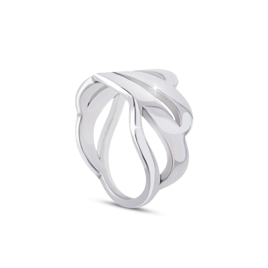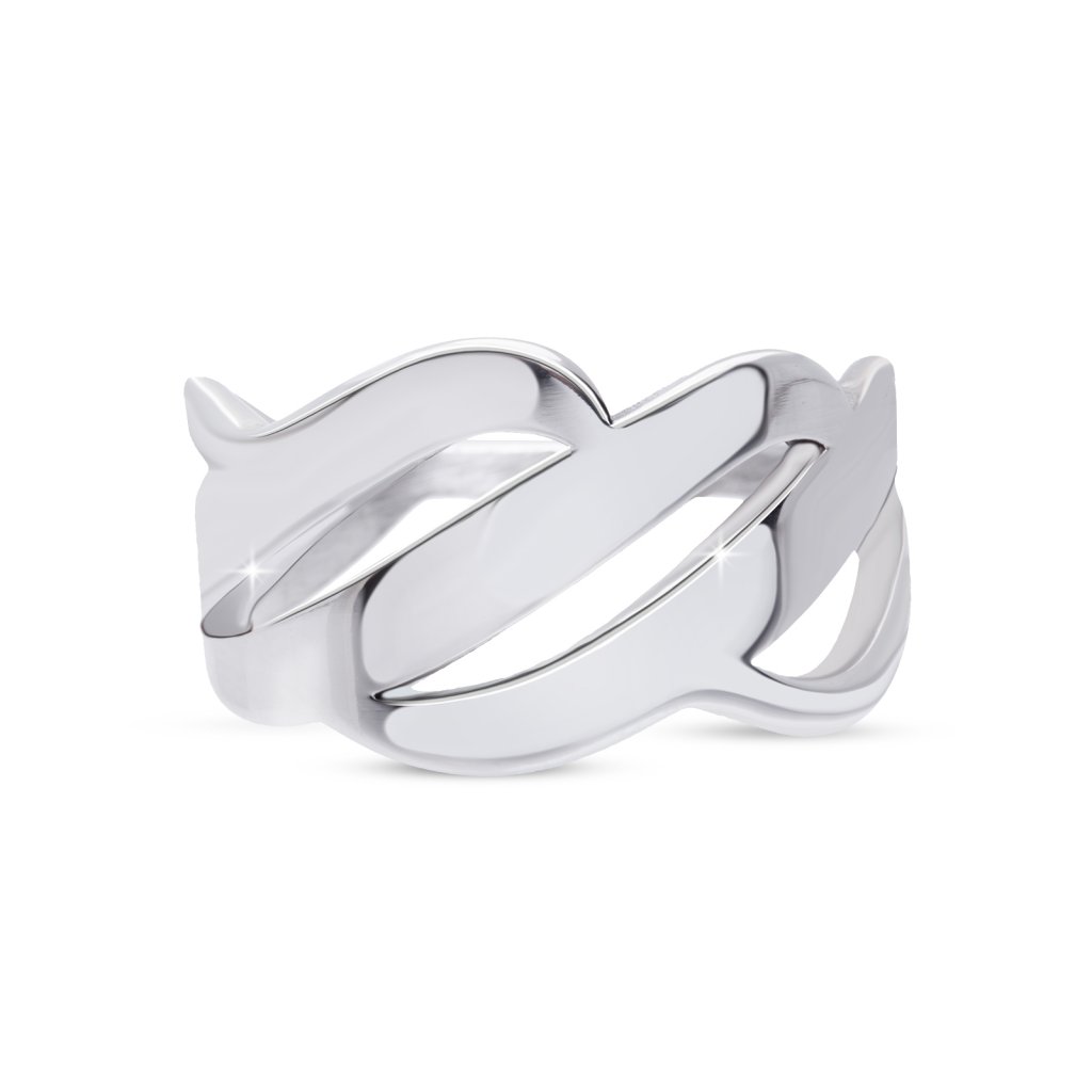 - Inel de damă realizat din oțel chirurgical, motiv ondulat cu secțiuni transversale decorative.