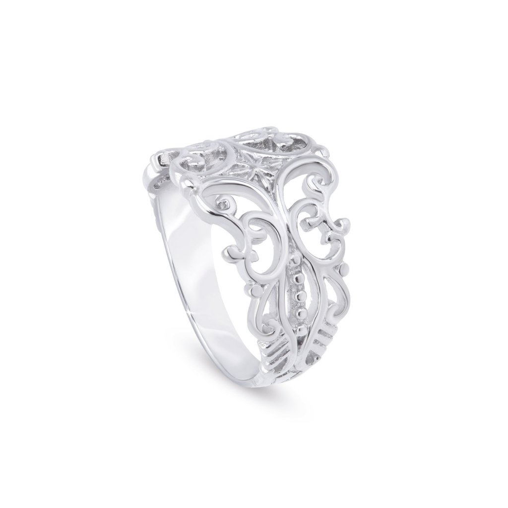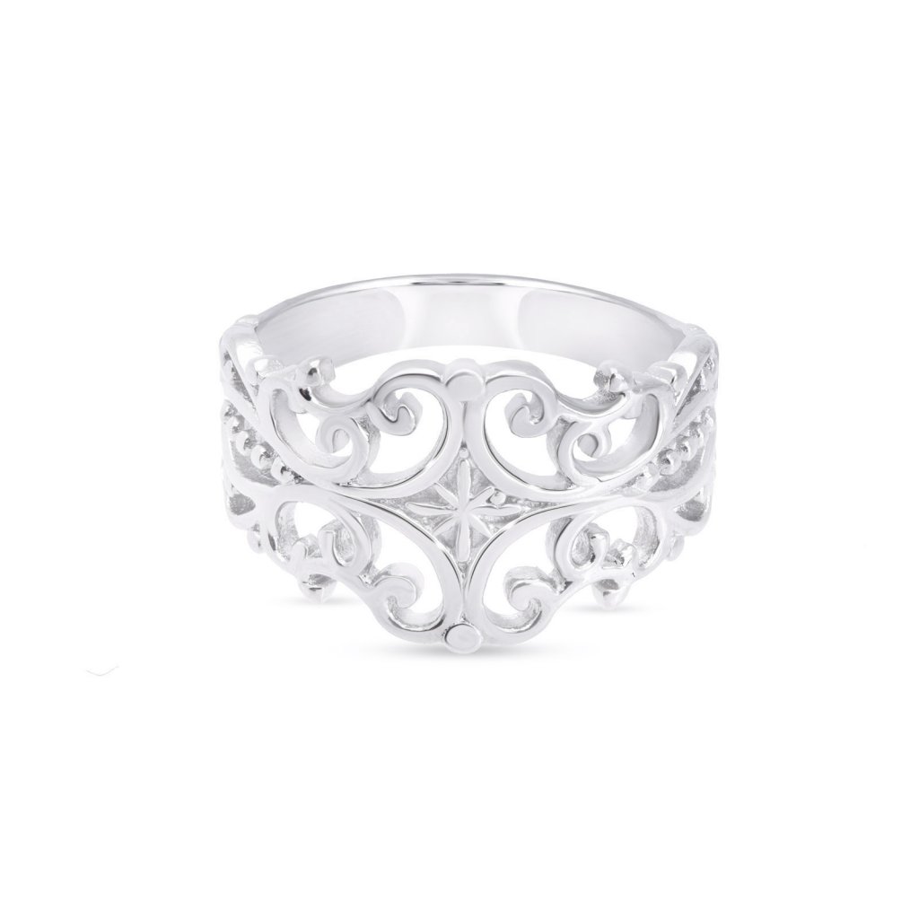 - Inel solid de damă realizat din oțel chirurgical cu ornamente.