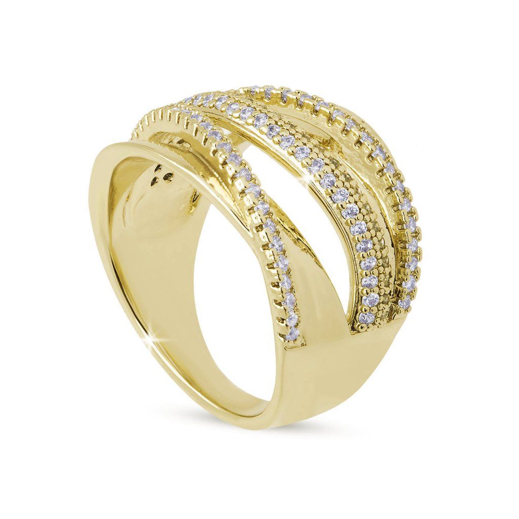 Un inel elegant cu design ondulat atrage atenția prin aspectul său luxos și strălucirea bogată. Suprafețele netede și lucioase alternează cu linii de pietre mici și clare, care reflectă lumina la fiecare mișcare. Baza este formată din metal rodiat cu un finisaj din aur de 14 karate, datorită căruia inelul își păstrează aspectul strălucitor chiar și în timpul purtării zilnice.
