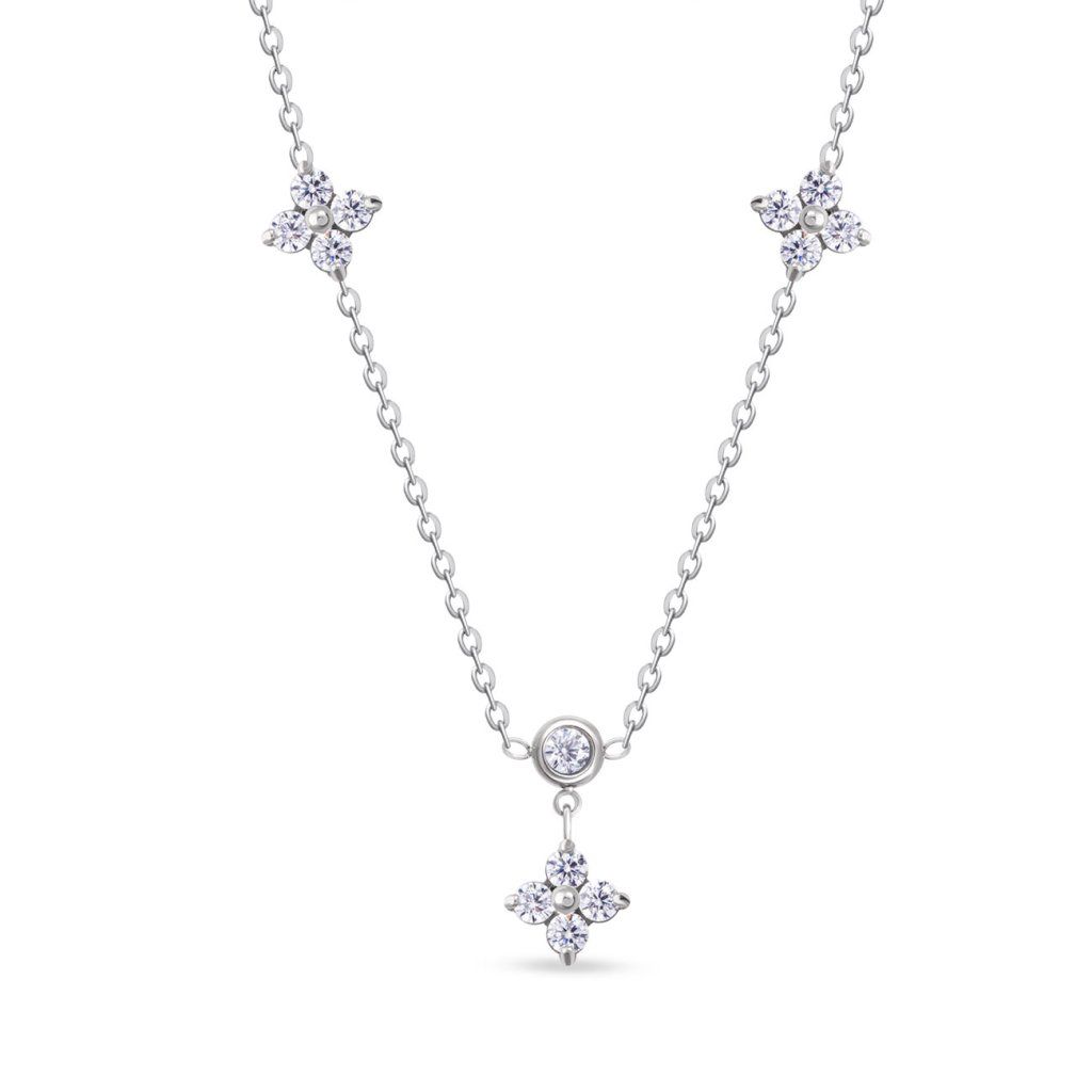 Colier delicat din oțel chirurgical cu zirconii florale. Lungime reglabilă, un accesoriu strălucitor și atemporal pentru fiecare zi.