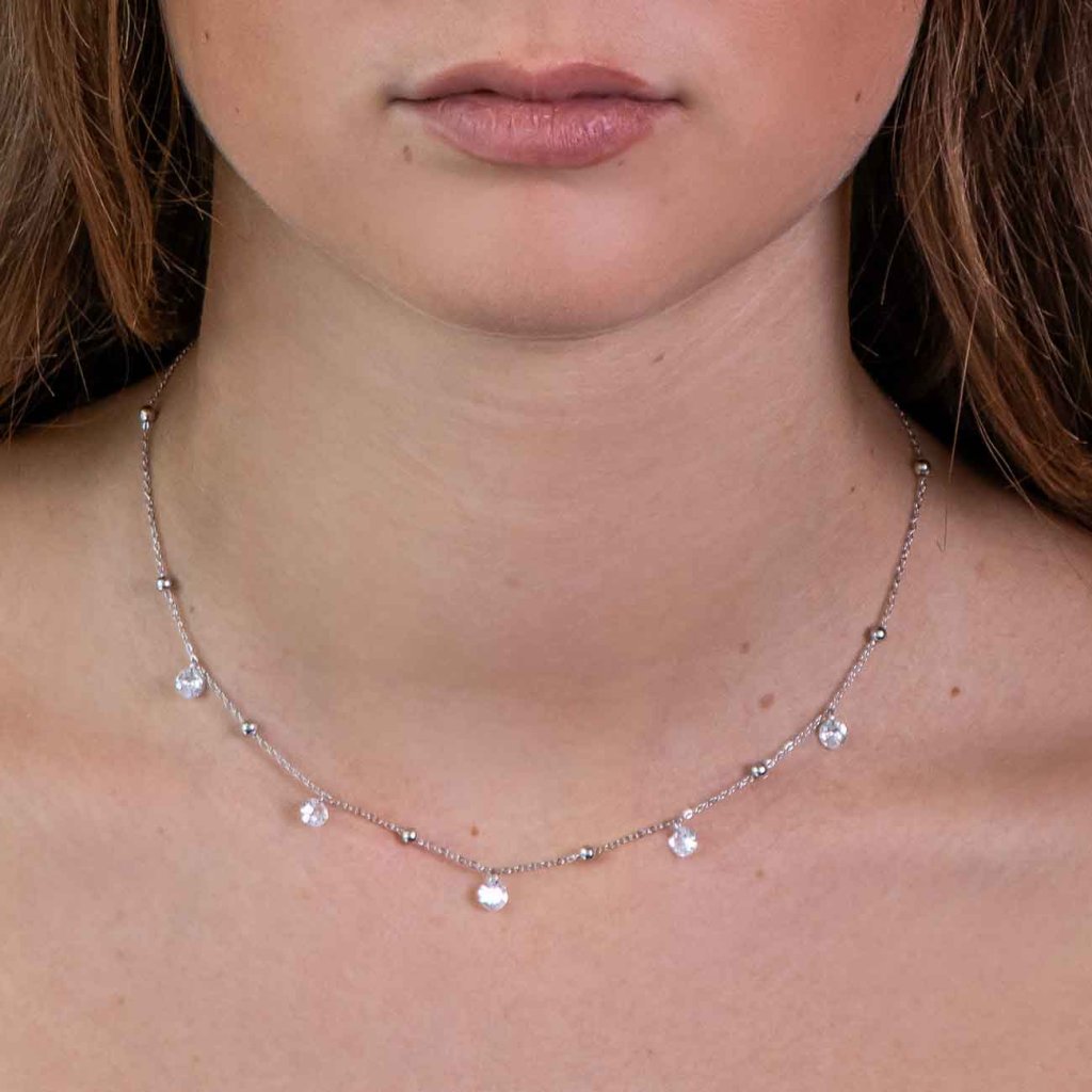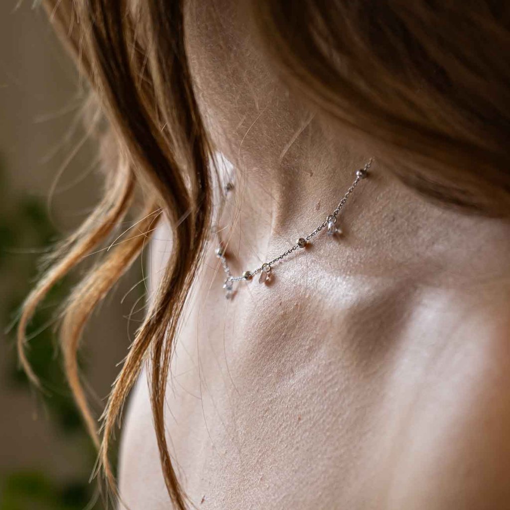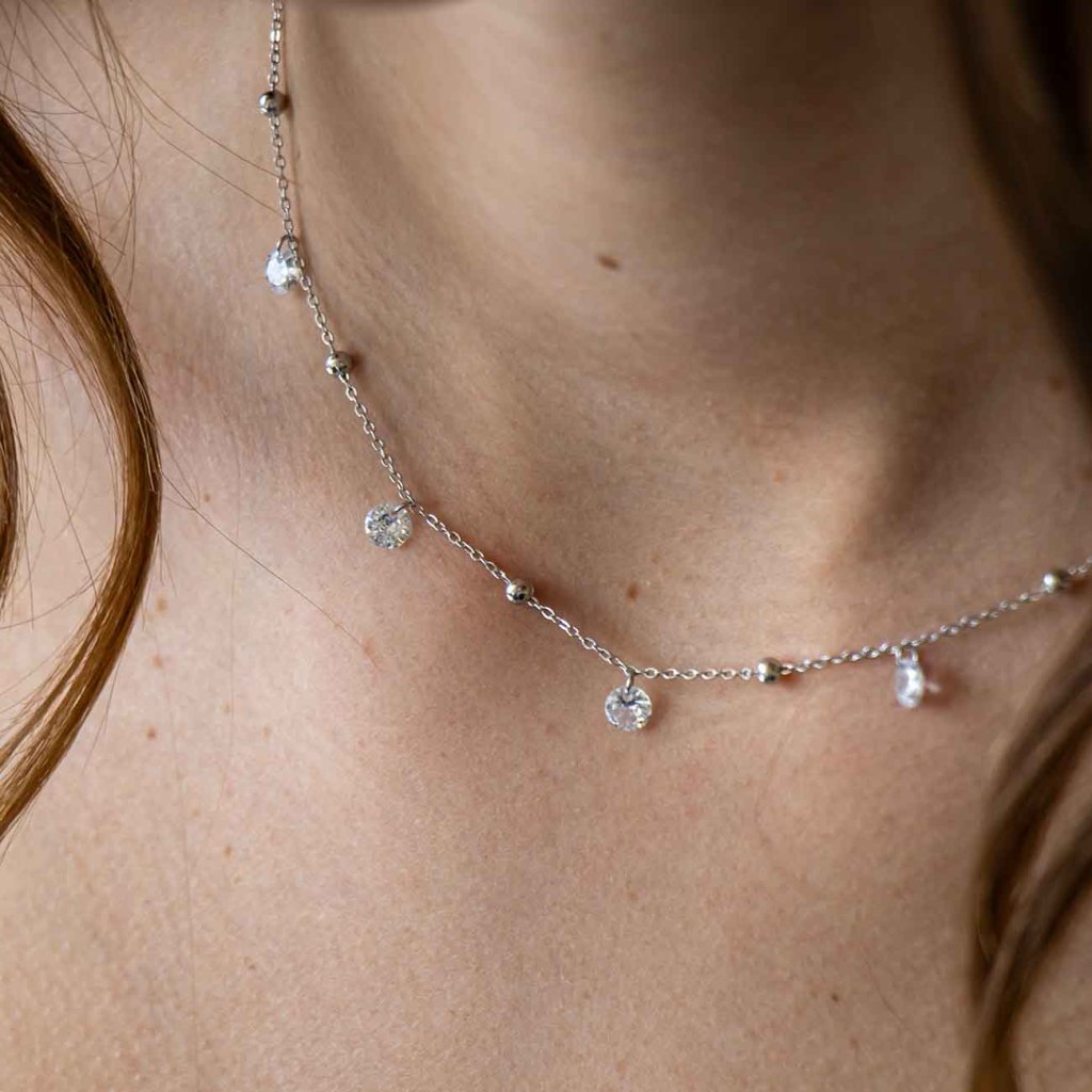 Lanț din oțel chirurgical cu mărgele strălucitoare și zirconiu cubic, care sunt așezate alternativ în jurul lanțului.