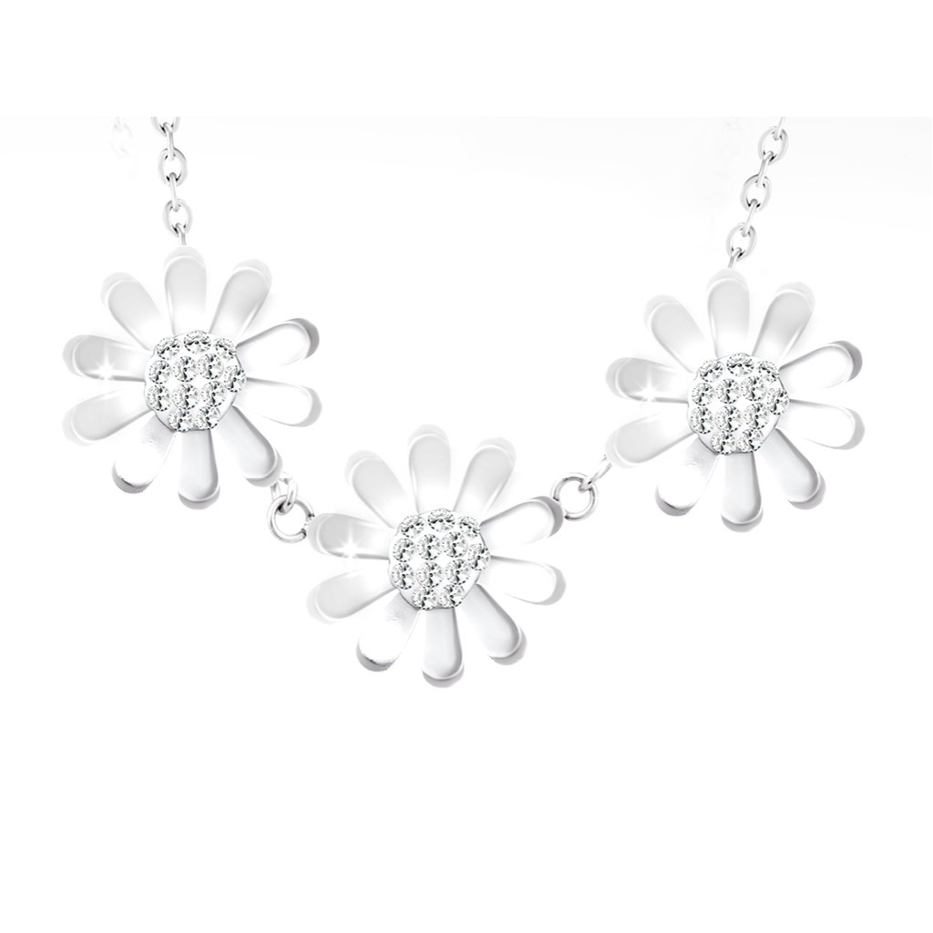 Colier decent cu pandantiv floare decorat cu zirconiu cubic este realizat din oțel inoxidabil de înaltă calitate oțel inoxidabil. Pandantiv floare este încrustat cu zirconiu cubic. Este un accesoriu versatil pentru orice ținută.Colierul este foarte frumos. Se fixează cu o carabină.