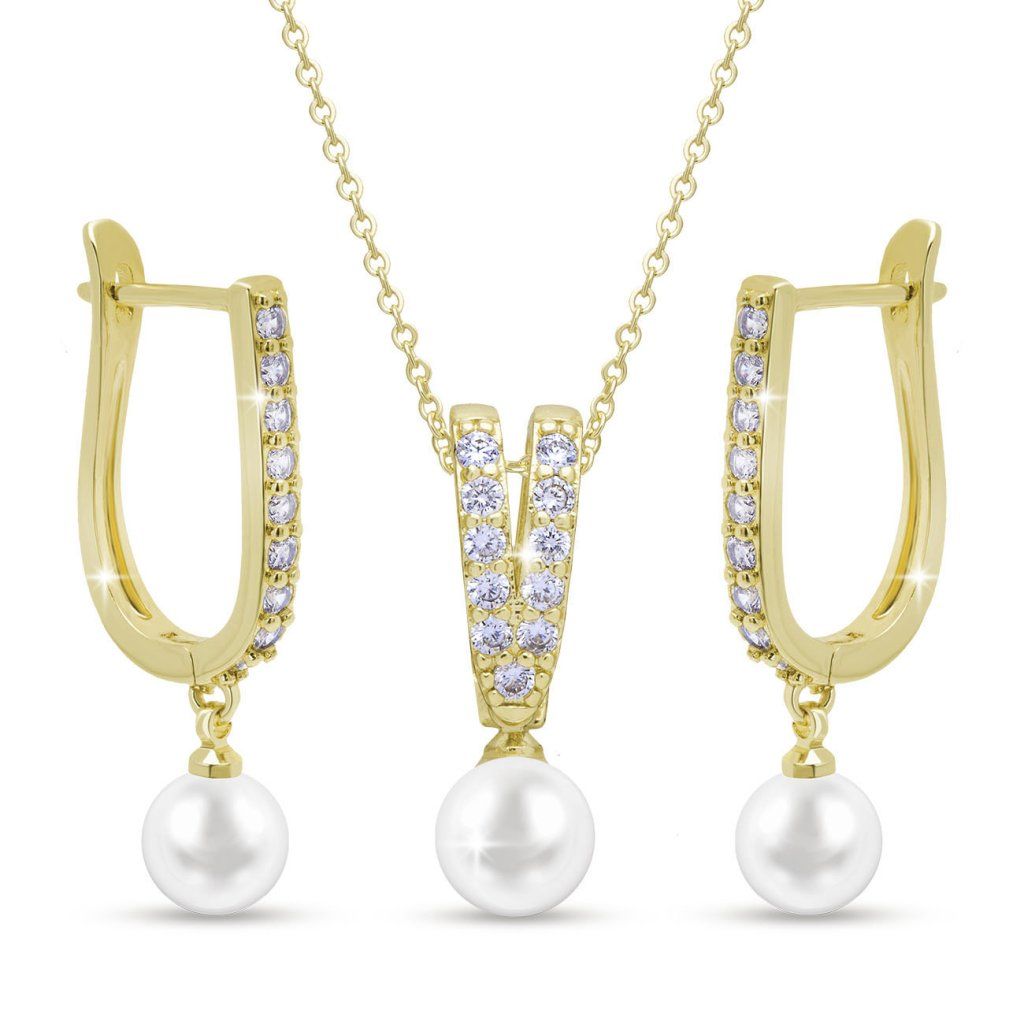 Subliniază-ți eleganța cu o bijuterie care nu se demodează niciodată. Acest set delicat, dar totuși de impact, combină strălucirea zirconiilor cu frumusețea subtilă a detaliului perlat, creând un întreg perfect armonios.