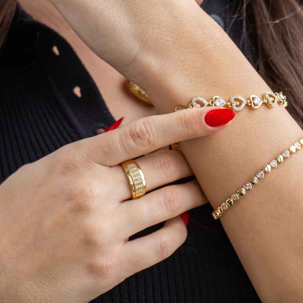 Suprafață placată cu aur – Bijuteria este acoperită cu un strat de aur de 14 carate, care îi conferă un aspect luxos și o protejează împotriva pierderii strălucirii. Datorită proprietăților hipoalergenice, este potrivit și pentru pielea sensibilă. Nu conține nichel.