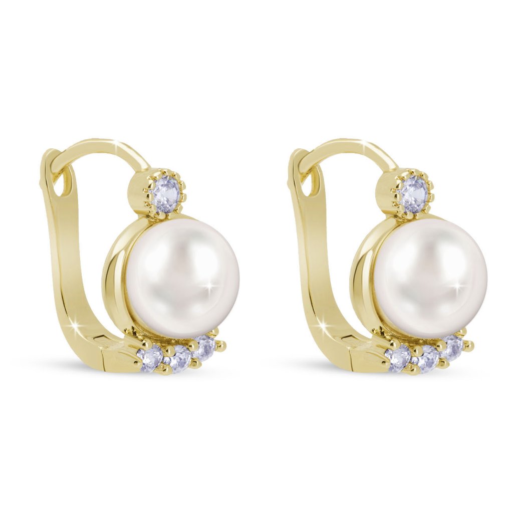 Cerceii eleganți cu o perlă centrală, încadrată de zirconi fini, radiază feminitate atemporală. Designul ușor rotunjit, în combinație cu suprafața placată cu aur, arată sofisticat și armonios. Datorită închiderii practice cu clapetă, sunt confortabil de purtat pe tot parcursul zilei.