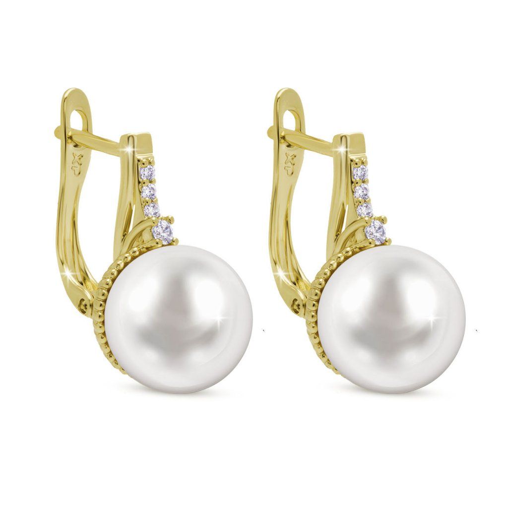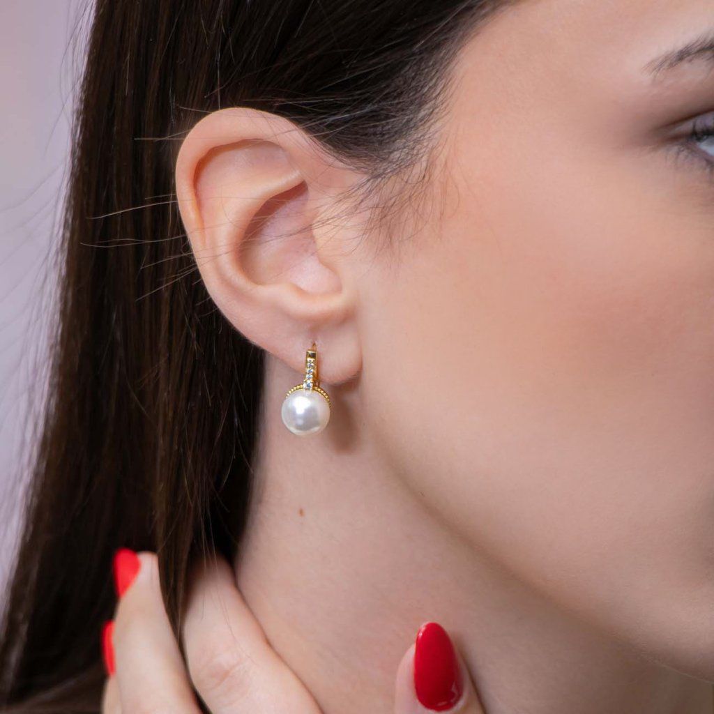 Cercei eleganți cu o perlă proeminentă și zirconii strălucitoare reprezintă o armonie între designul clasic și prelucrarea modernă. Datorită închizătorii practice de tip patent rusesc, aceștia stau în siguranță pe ureche și, în același timp, ies frumos în evidență la fiecare mișcare.