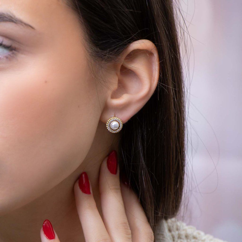 PARIS 3895 Cercei împletiți cu perlă
