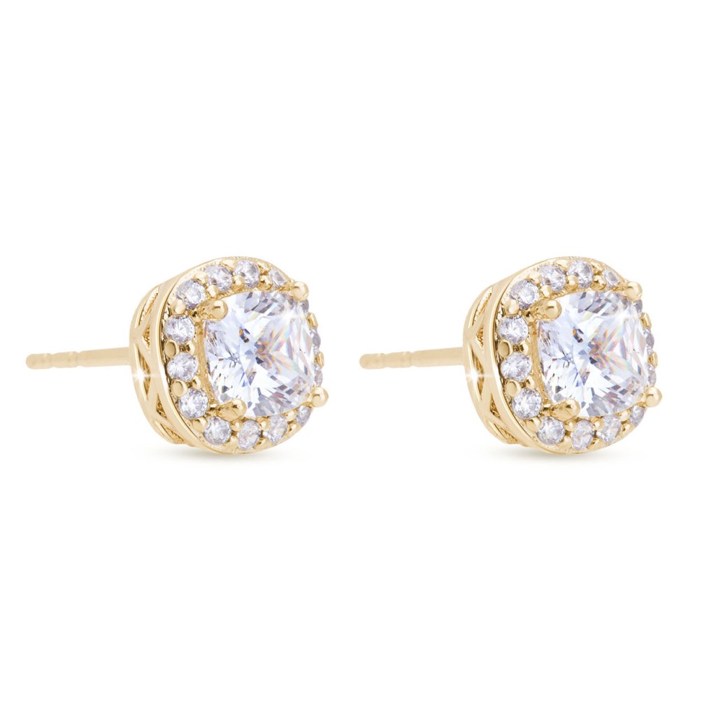 Cercei placați cu aur de 14k - sâmburi cu zirconiu cubic clar mare înconjurat de zirconiu cubic mic.