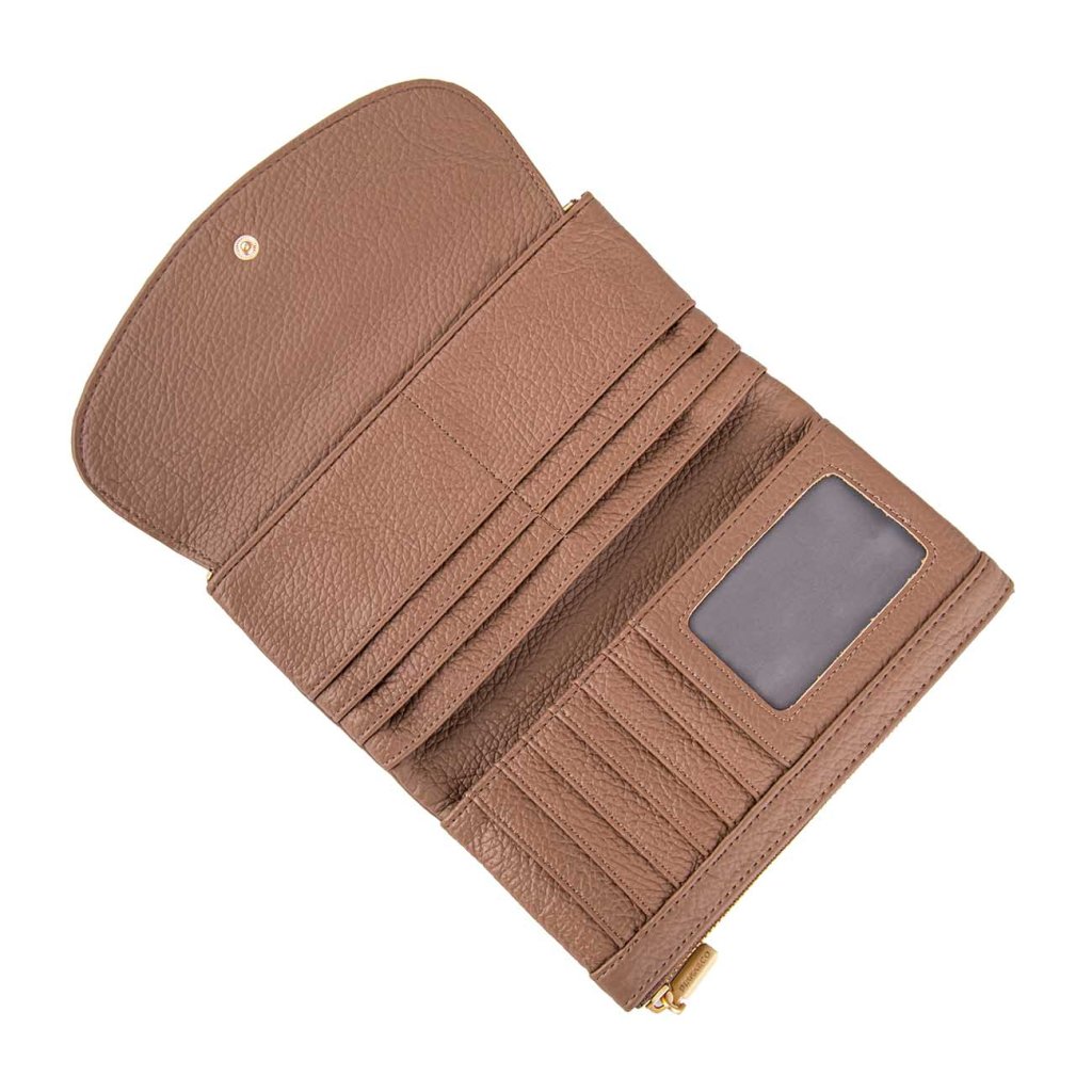 Organizarea interioară practică oferă o mulțime de compartimente pentru carduri, bancnote și documente, un buzunar transparent pentru fotografie sau carte de identitate și un compartiment pentru monede, închis cu fermoar. Închiderea este realizată cu o clapetă cu capsa magnetică, care asigură închiderea sigură a conținutului.