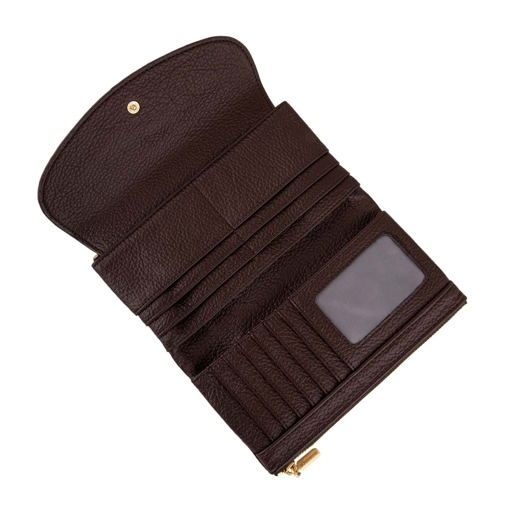 Organizarea interioară practică oferă o mulțime de compartimente pentru carduri, bancnote și documente, un buzunar transparent pentru fotografie sau act de identitate și un compartiment pentru monede închis cu fermoar. Închiderea este realizată printr-o clapetă cu capsă magnetică, care asigură închiderea sigură a conținutului.