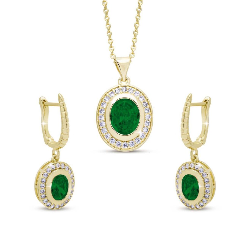 SET 0060-1 Set de bijuterii placate cu aur – cercei și lănțișor cu zirconiu verde