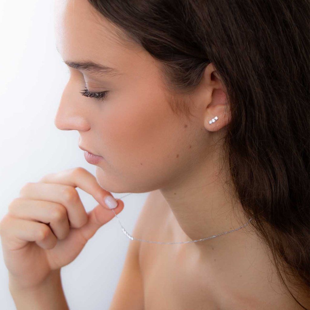 Set argintiu lanț + cercei cu zirconii strălucitoare 10 0056