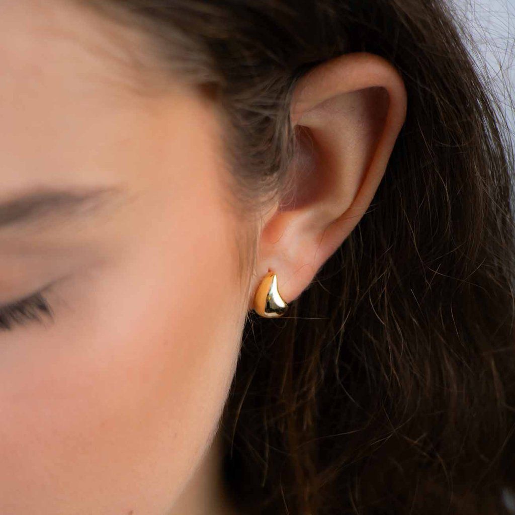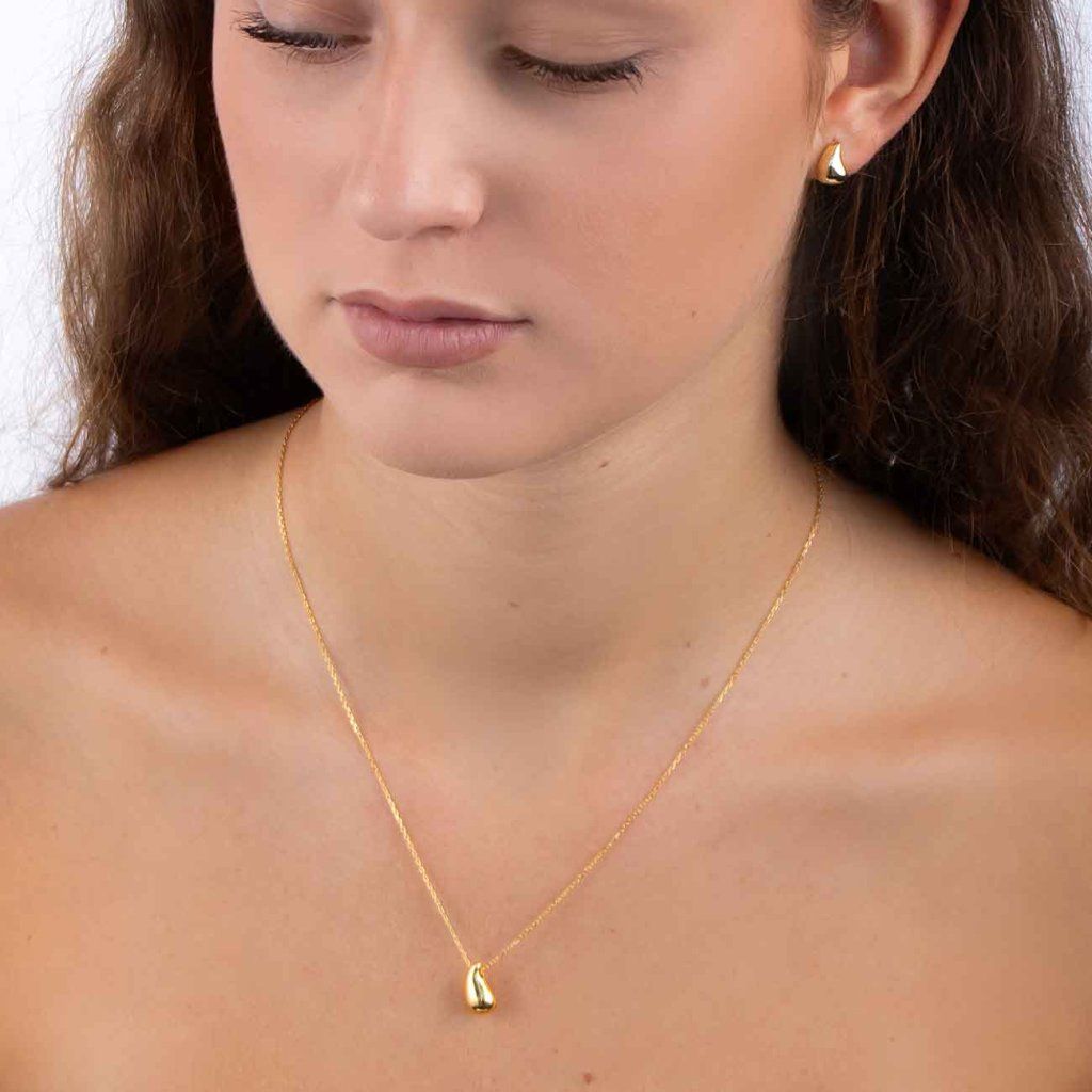 Setul minimalist cu o formă delicată, rotunjită, în formă de picătură, are un aspect modern și sofisticat. Fabricat din argint Ag 925/1000 și placat cu aur de 14k, atrage atenția prin suprafața sa lucioasă și designul atemporal. Forma elegantă fără pietre subliniază puritatea și lejeritatea designului general. Potrivit pentru purtarea de zi cu zi și pentru ocazii speciale.