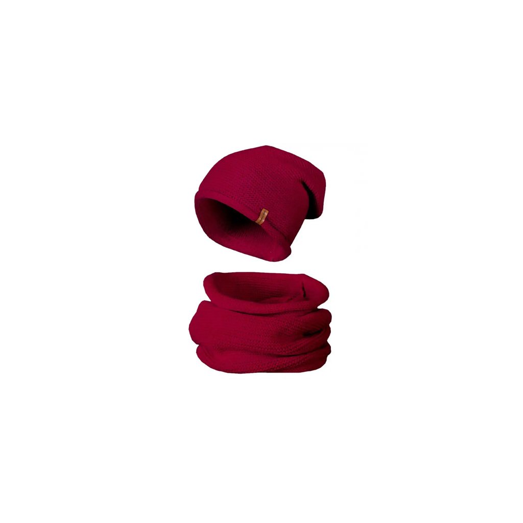 Set de iarnă pentru femei Mark - căciulă și fular circular, culoare vișinie