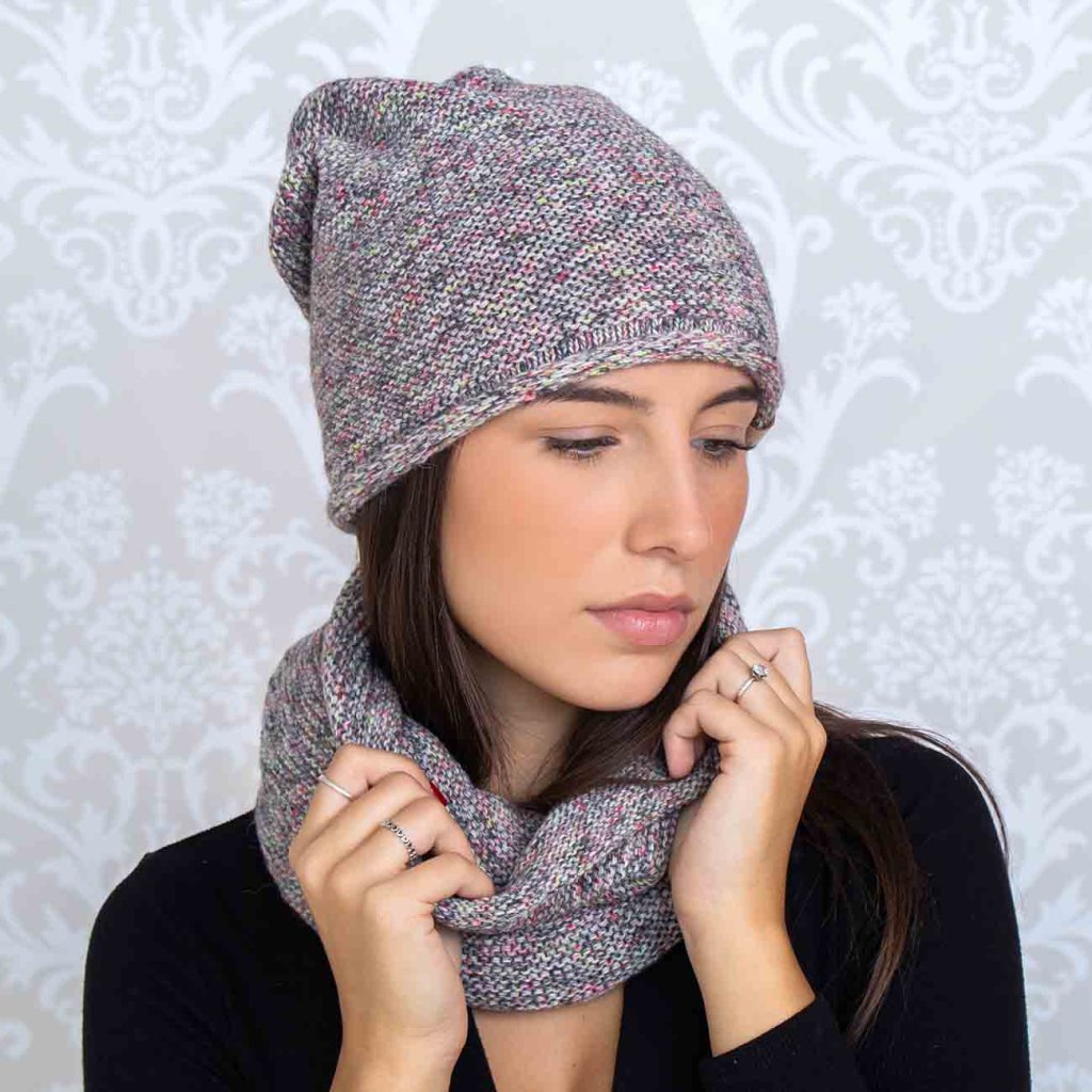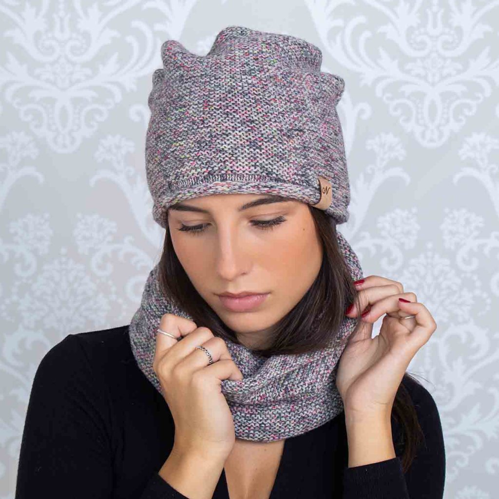 Set de iarnă pentru femei Mark - căciulă și fular circular, șuvițe maro-multicolore