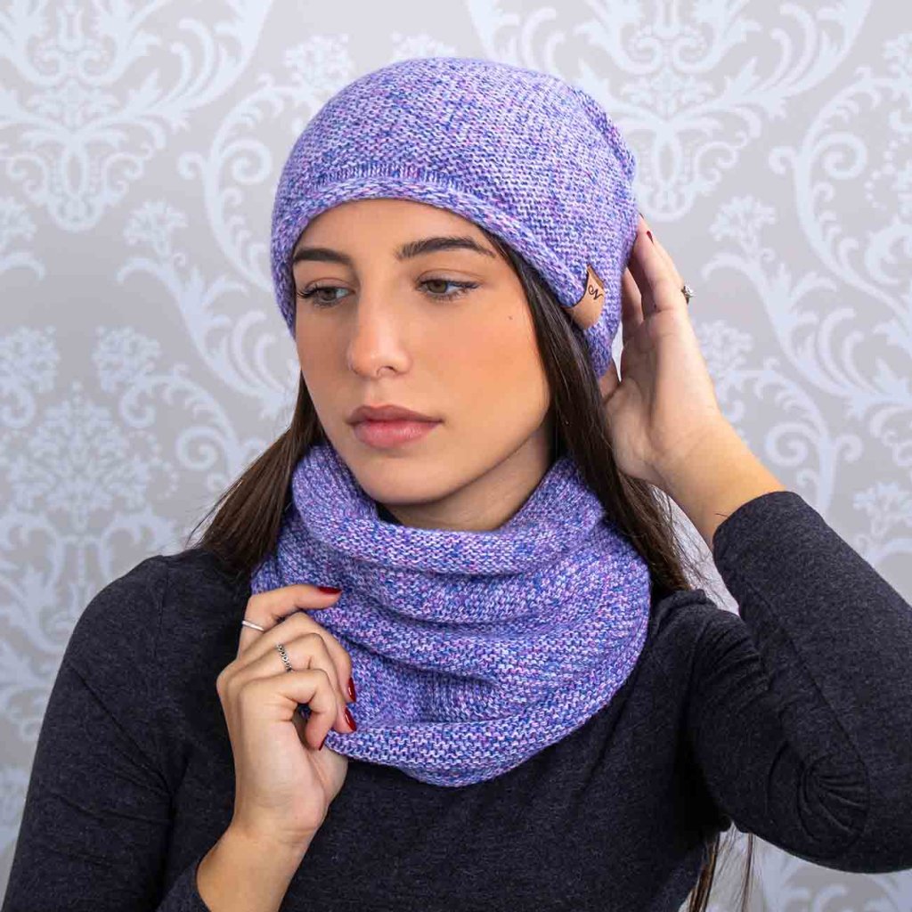 Set de iarnă pentru femei Mark - căciulă și fular tip tunel, culori violet-albastru