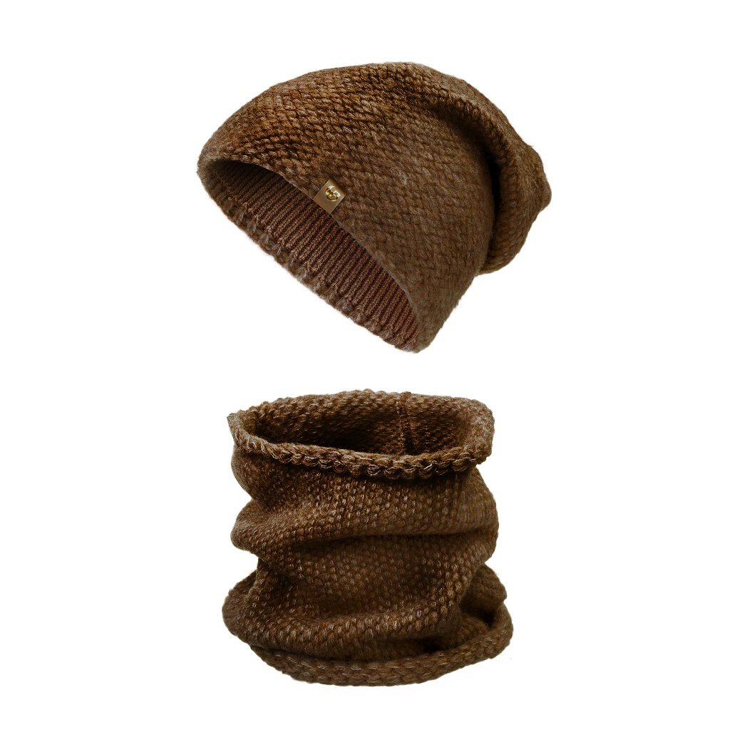 Set de iarnă pentru femei WROBI - căciulă și fular tip tunel, culoare maro închis
