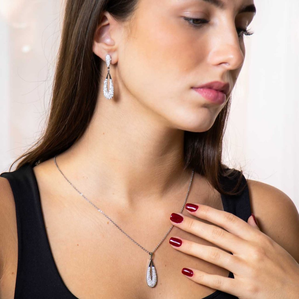 Set din oțel chirurgical, picătură decorată cu subtonuri albe, lanț + cercei atârnați cu zirconi 224