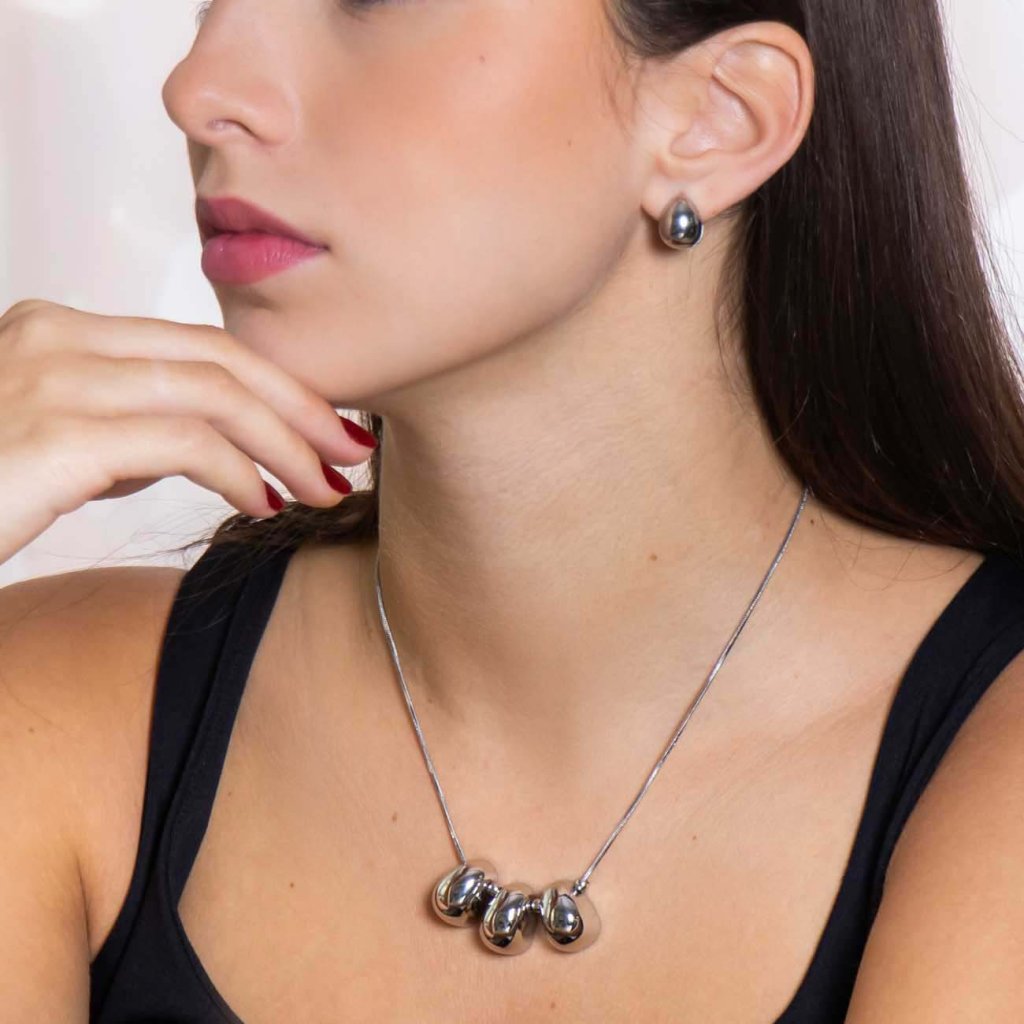 Set din oțel chirurgical cu motiv picături, lanț + cercei