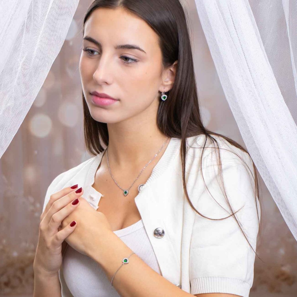 - Set din oțel chirurgical, set inimă cu zirconiu cubic verde, lanț + brățară.