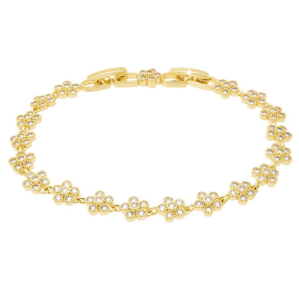- Brățară placată cu aur de 14k, decorată cu pietre de zirconiu cubic.