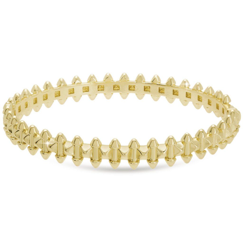 O brățară solidă și impunătoare, placată cu aur de 14K, va atrage atenția prin designul său original cu țepi și aspectul modern.