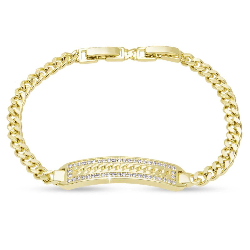 O brățară impunătoare, cu o placă centrală prelucrată cu precizie, împodobită cu zirconii, va atrage prin strălucirea sa radiantă și linia elegantă. Combinația dintre un lanț fin și un element decorativ conferă un aspect modern și, în același timp, atemporal. Va completa perfect ținuta de zi cu zi, dar și un aspect festiv.