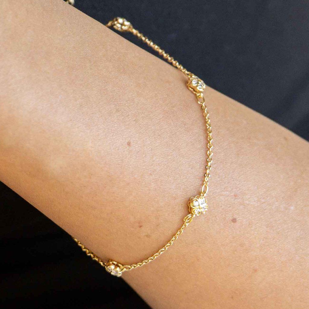Adaugă un strop de prospețime și strălucire stilului tău. Această brățară delicată cu detalii florale emană delicatețe, un aer atemporal și, datorită măiestriei precise, va deveni un accesoriu elegant pentru fiecare zi.