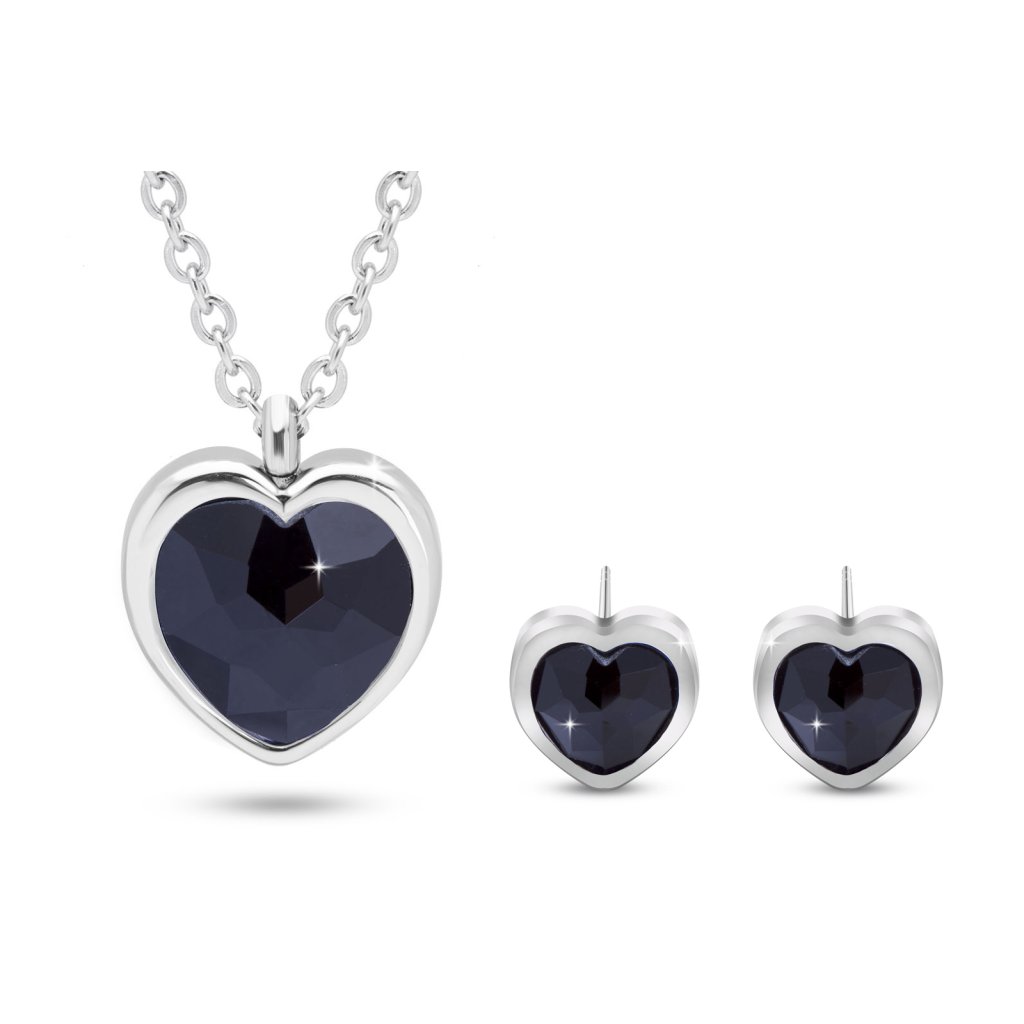 VERONA 0023-2 Set colier și cercei, inimă cu zirconi negri