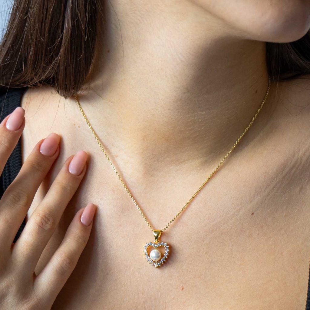 VERONA 0069 Set de bijuterii placat cu aur de 14k inimă perlă zirconii