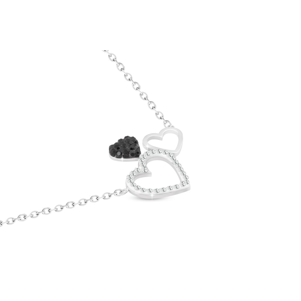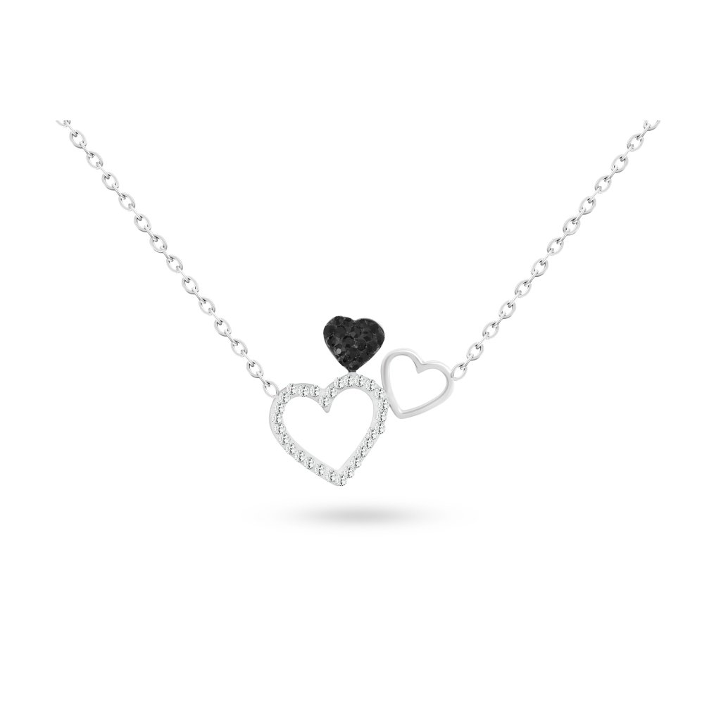 VERONA 1441-1 Colier cu pandantiv cu trei inimi, decorat cu zirconi - inimă neagră