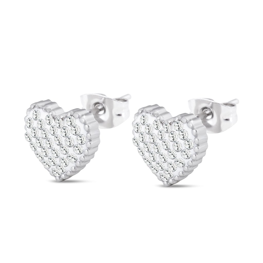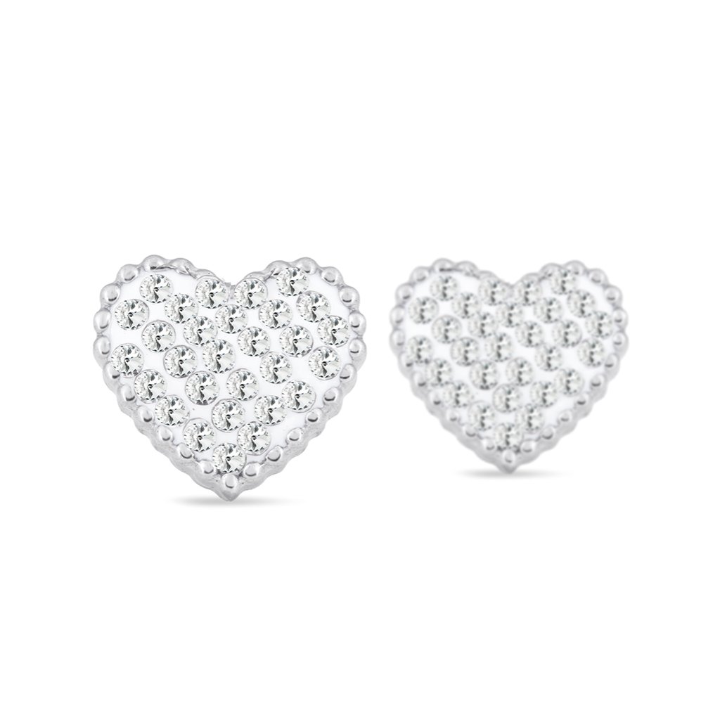 Cerceii strălucitori în formă de inimioare au un aspect delicat și, în același timp, luxos. Suprafața este dens împânzită cu zirconii mici și clare, care strălucesc minunat. Datorită designului lor, sunt ideale ca un cadou romantic sau un accesoriu delicat pentru ținută.