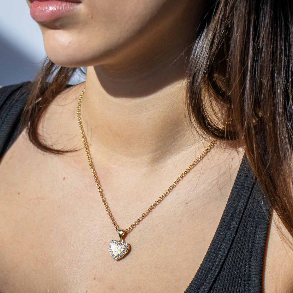 Motivul romantic în formă de inimă, într-un design precis și atemporal, va lumina decolteul tău cu o strălucire delicată. Cristalele de zirconiu care înconjoară pandantivul conferă bijuteriei un luciu distinct, în timp ce suprafața structurată creează un detaliu elegant. Acest lănțișor este un simbol al sentimentelor și al stilului rafinat.