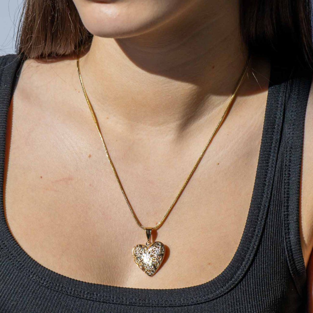 VERONA 2649 Lănțișor placat cu aur de 14k medalion inimă filigran