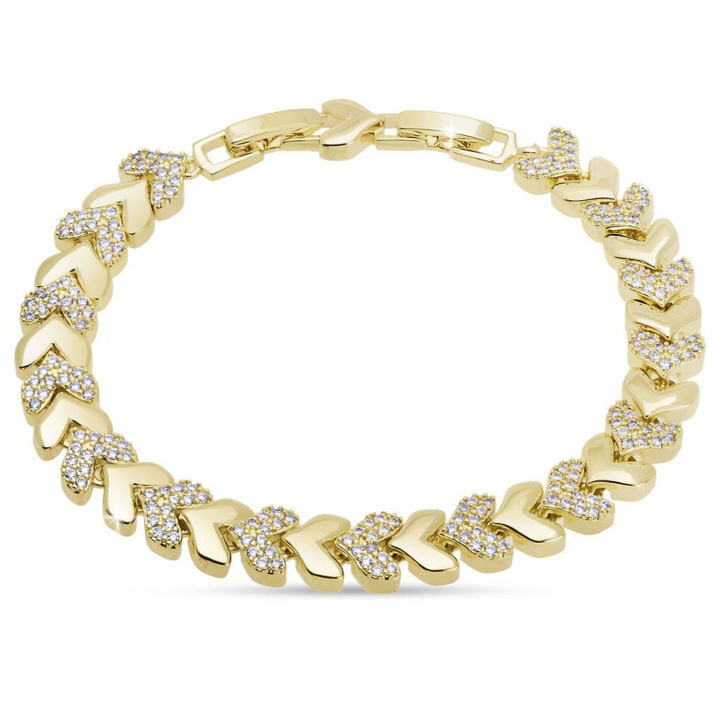VERONA 3049 Brățară placată cu aur cu motiv de inimioare și zirconii clare