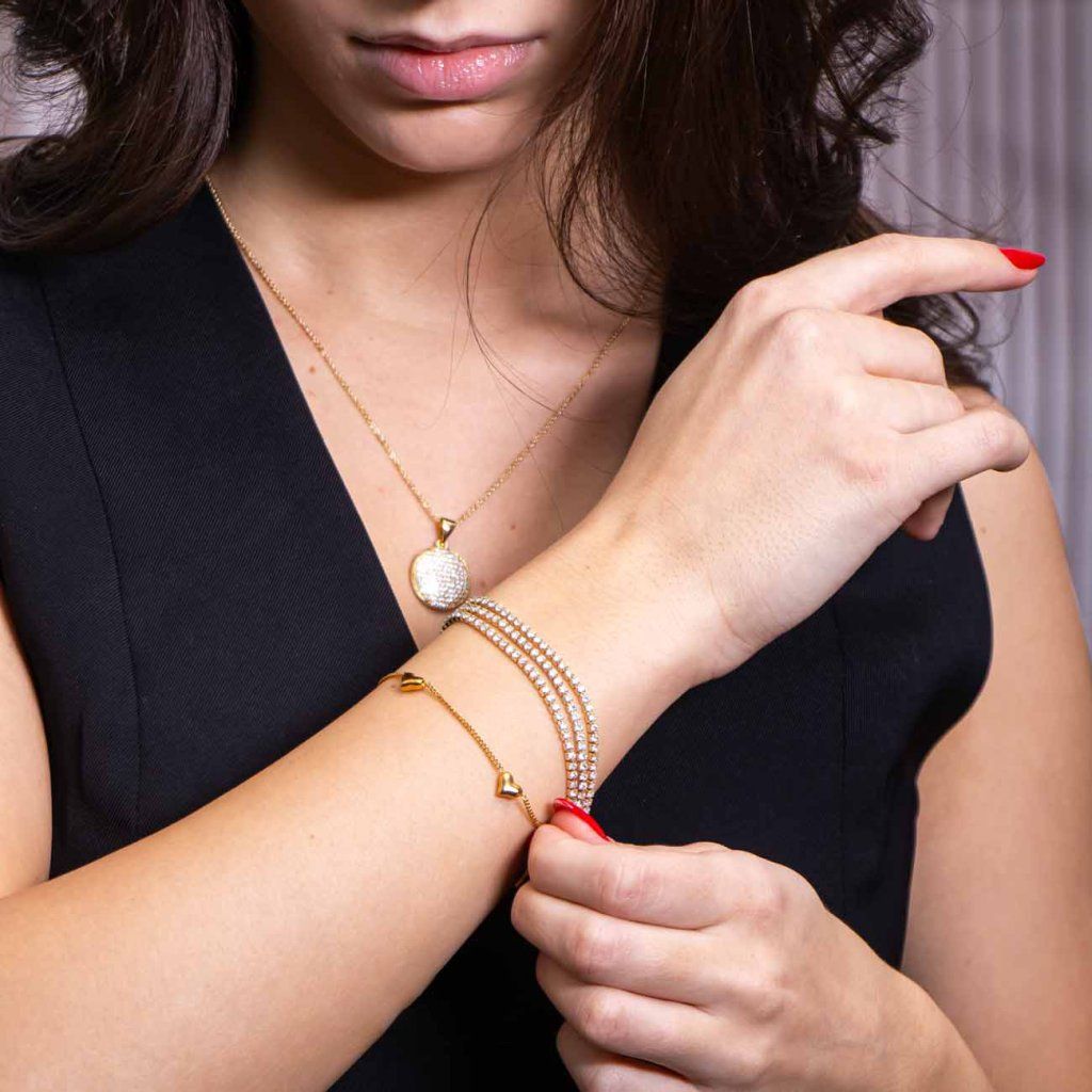 Brățara va arăta frumos singură sau în combinație cu alte accesorii delicate. Pentru a menține aspectul strălucitor, recomandăm să limitați contactul cu parfumul și substanțele chimice.