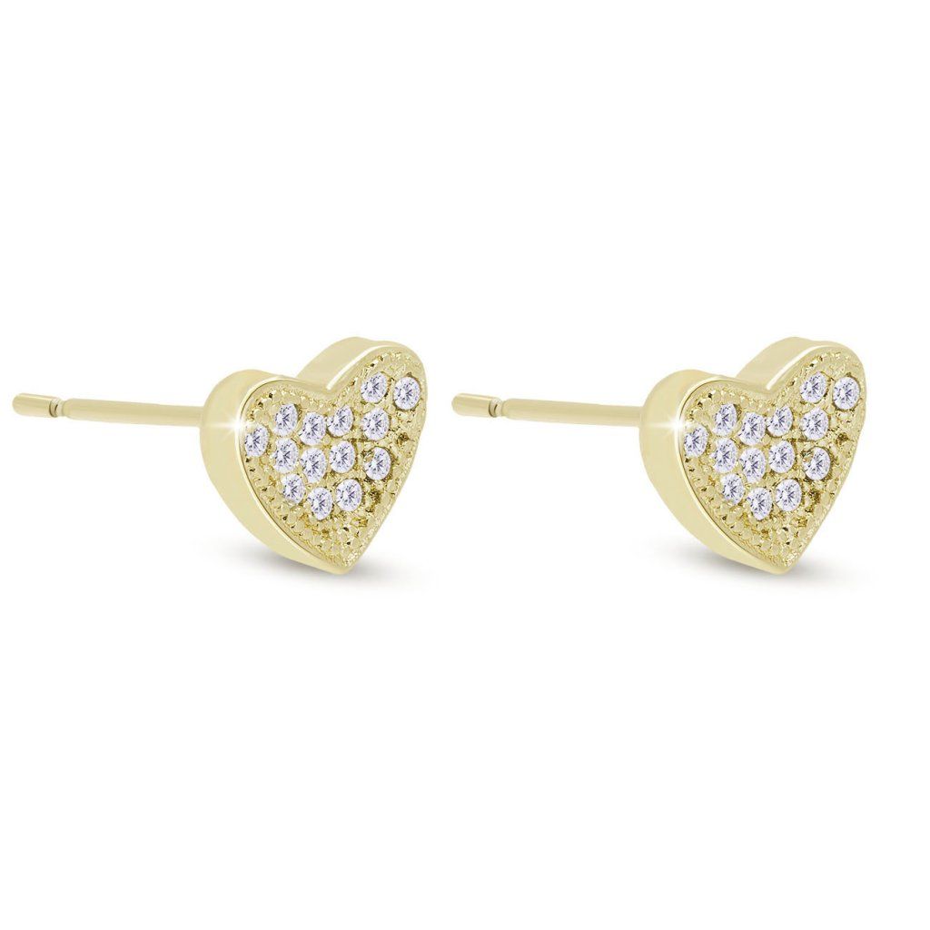 Verona 3159 Cercei placați cu aur 14k inimă cu zirconi
