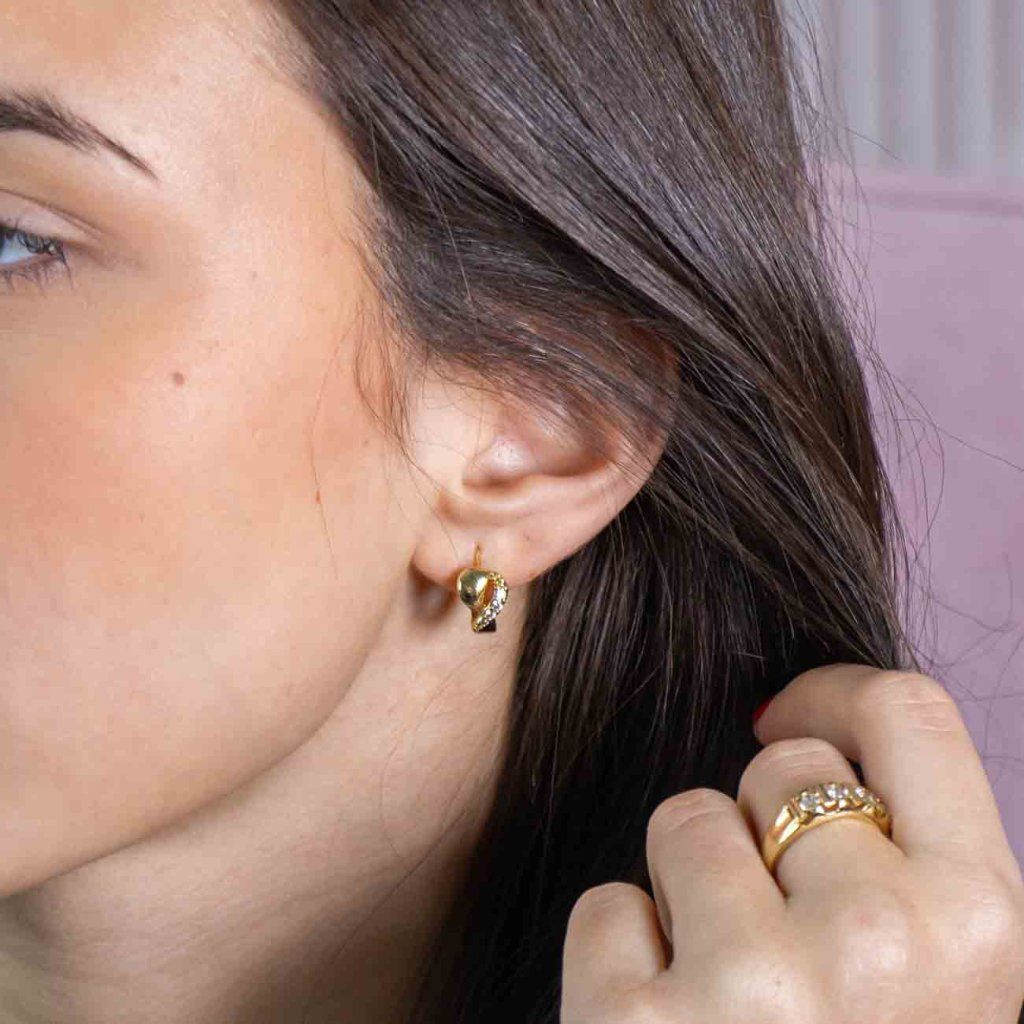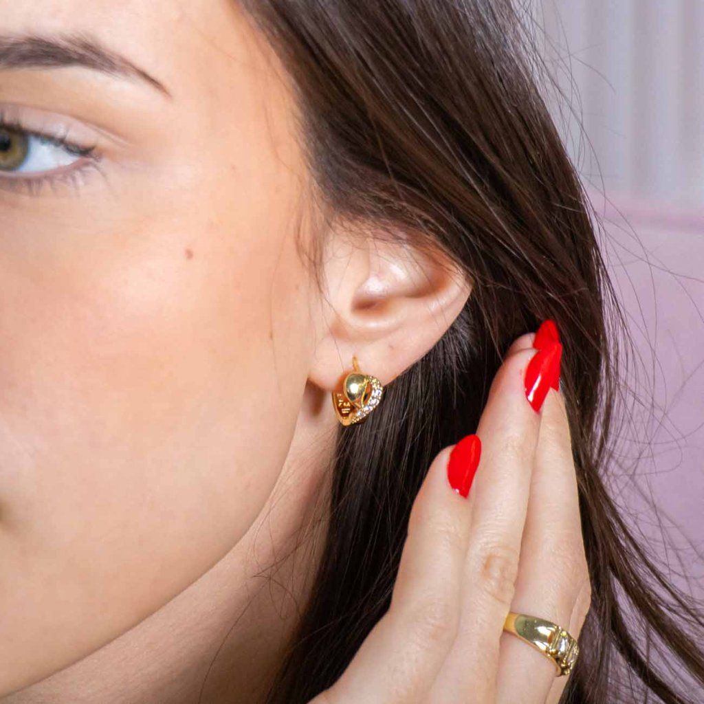 Cercei rotunzi delicati cu un detaliu distinctiv de inimioară și încrustați cu zirconii strălucitoare vor adăuga un accent delicat, dar elegant, ținutei dumneavoastră. Designul elegant, combinat cu un luciu discret, creează o bijuterie care subliniază farmecul natural și eleganța.