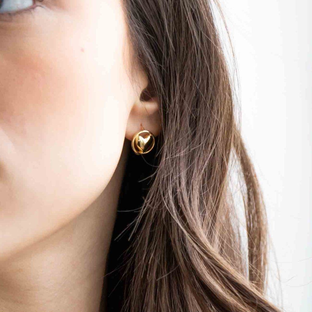Cercei fini în formă de inel, cu un motiv dominant de inimă în partea din față, arată delicat, dar totuși distinctiv. Designul elegant în finisaj auriu strălucitor este ideal pentru purtarea zilnică, precum și pentru ocazii festive.