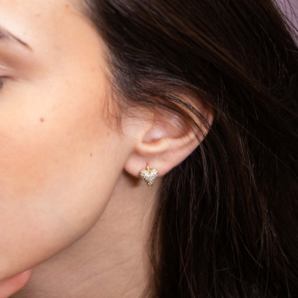 Cercei eleganți în formă de inele, decorați cu inimioare mici, încrustate cu zirconii transparente, aduc un luciu delicat și un farmec jucăuș. Motivul delicat al inimii conferă bijuteriei o notă romantică, în timp ce închiderea practică cu balama asigură o purtare confortabilă pe tot parcursul zilei. Ideali pentru a fi purtați zilnic sau ca un cadou minunat.
